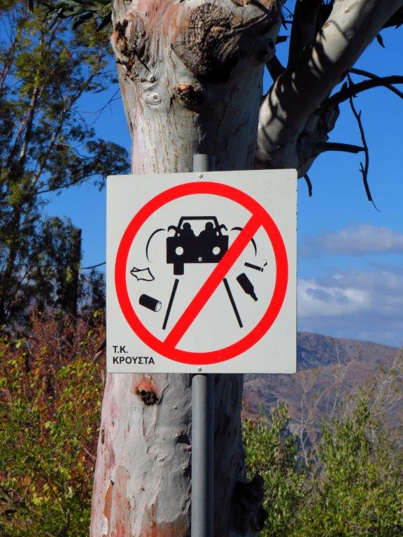 På väg hem såg jag två väldans bra vägskyltar! Till vänster gillar jag den i mitten: hårnålskurva. Och till höger en skylt som borde stå tätt, tätt längs de flesta vägar här på ön!