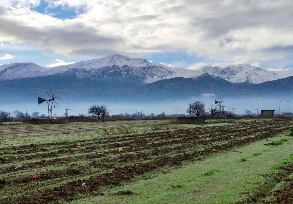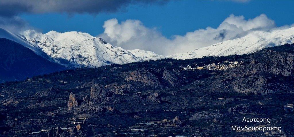 Dikti-massivets toppar bakom bergsbyn Anatoli (25 december 2024):