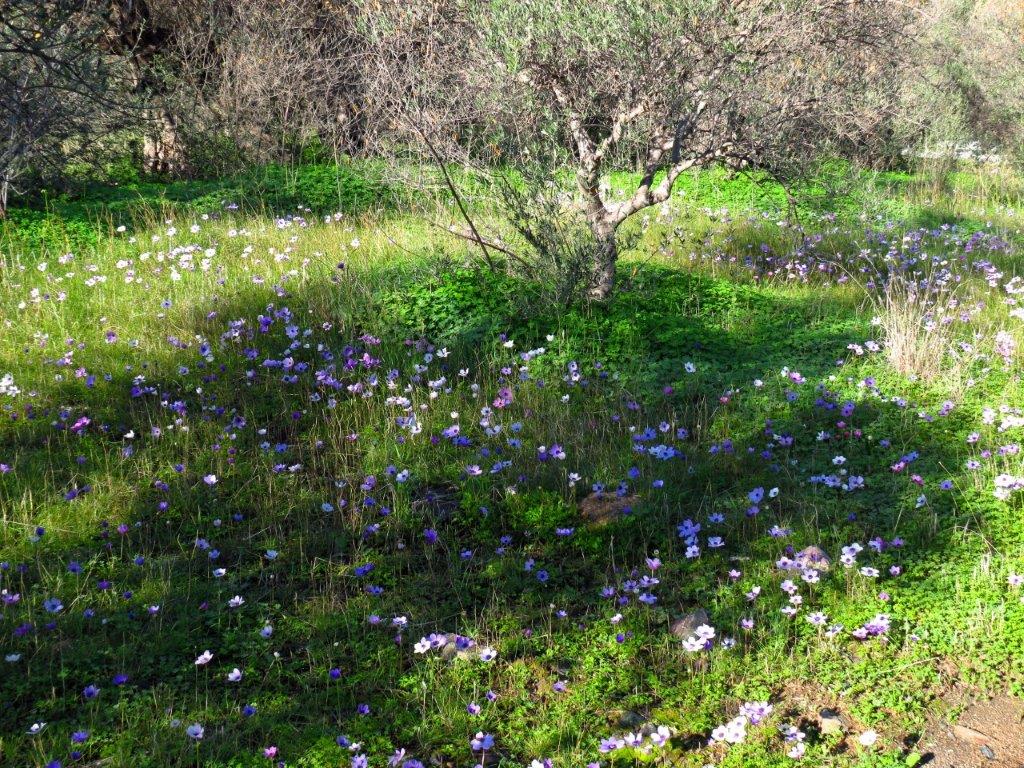 Och nu breder de ut sig, de där vinterblommorna, när de fått energi och kraft efter regnen! Jag kom in i riktigt anemonland där de fanns i riktiga mattor överallt: