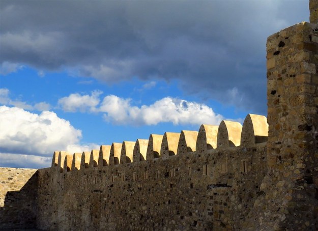 Varje stad med självaktning har en venetianska borg, ofta kallad Kalés efter det osmanska ordet för ”torn”. Vår borg byggdes 1212 av piraten Enrico Peskatarre från Genua som dock omedelbart därefter sålde till Venetianarna som utvecklade den. År 1508 förstördes den av en jordbävning, men skadorna återställdes inte helt. Borgen förstärktes 1626 av Francesco Morozini och föll i händerna på osmanerna 1647.