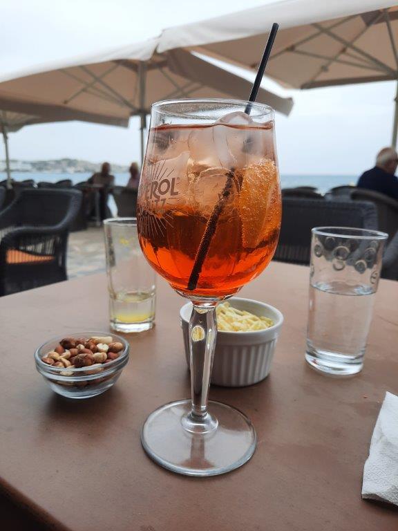 Förutom kafenio och ouzerier (de är värda att besöka! beställ nå’n dryck med alkohol och du får in många meze {smårätter, tilltugg]) har vi också begåvats med olika caféer som serverar go’a sallader och annat. T ex Kermen (testa Choco Pancake, men dela en på två…) och Casablanca. Längs stora gatan Dimokratias (från taxistationen västerut) ligger flera caféer, t ex Elephant street.