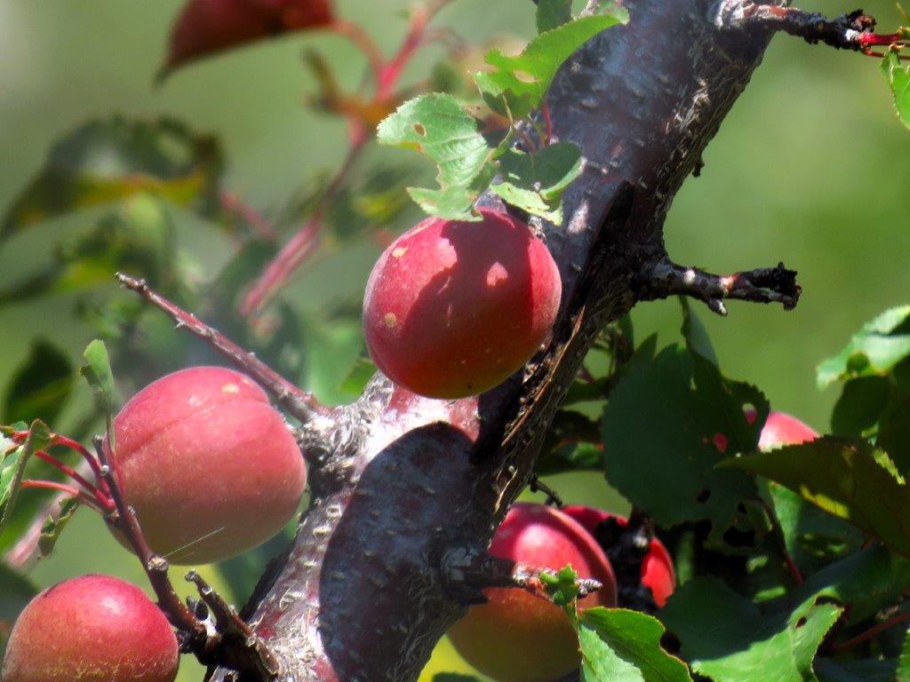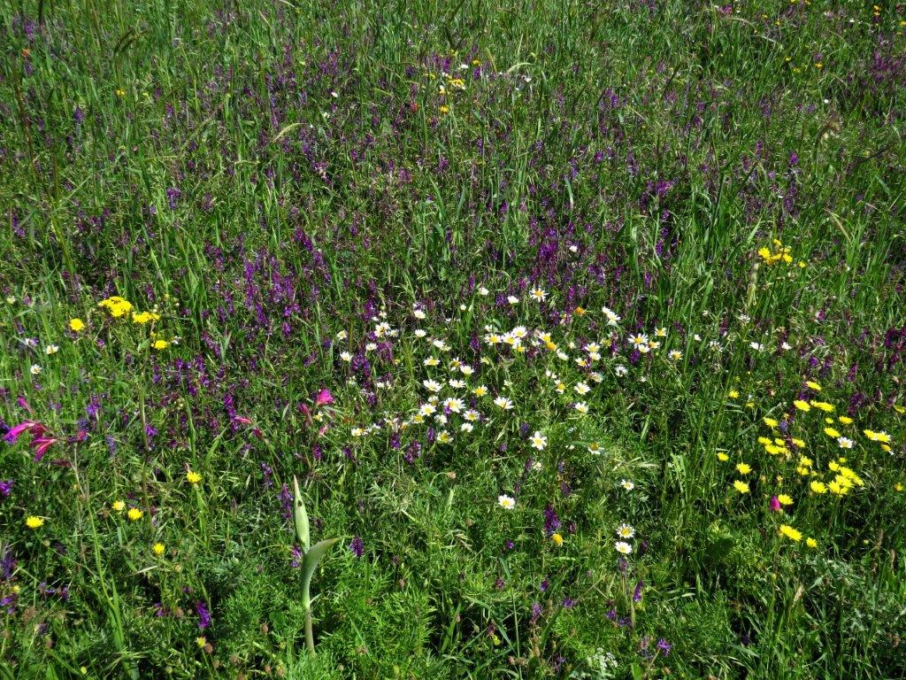Här fanns vårblommor kvar och äpplen som har börjat mogna.