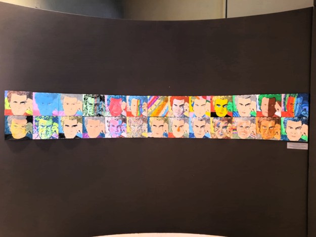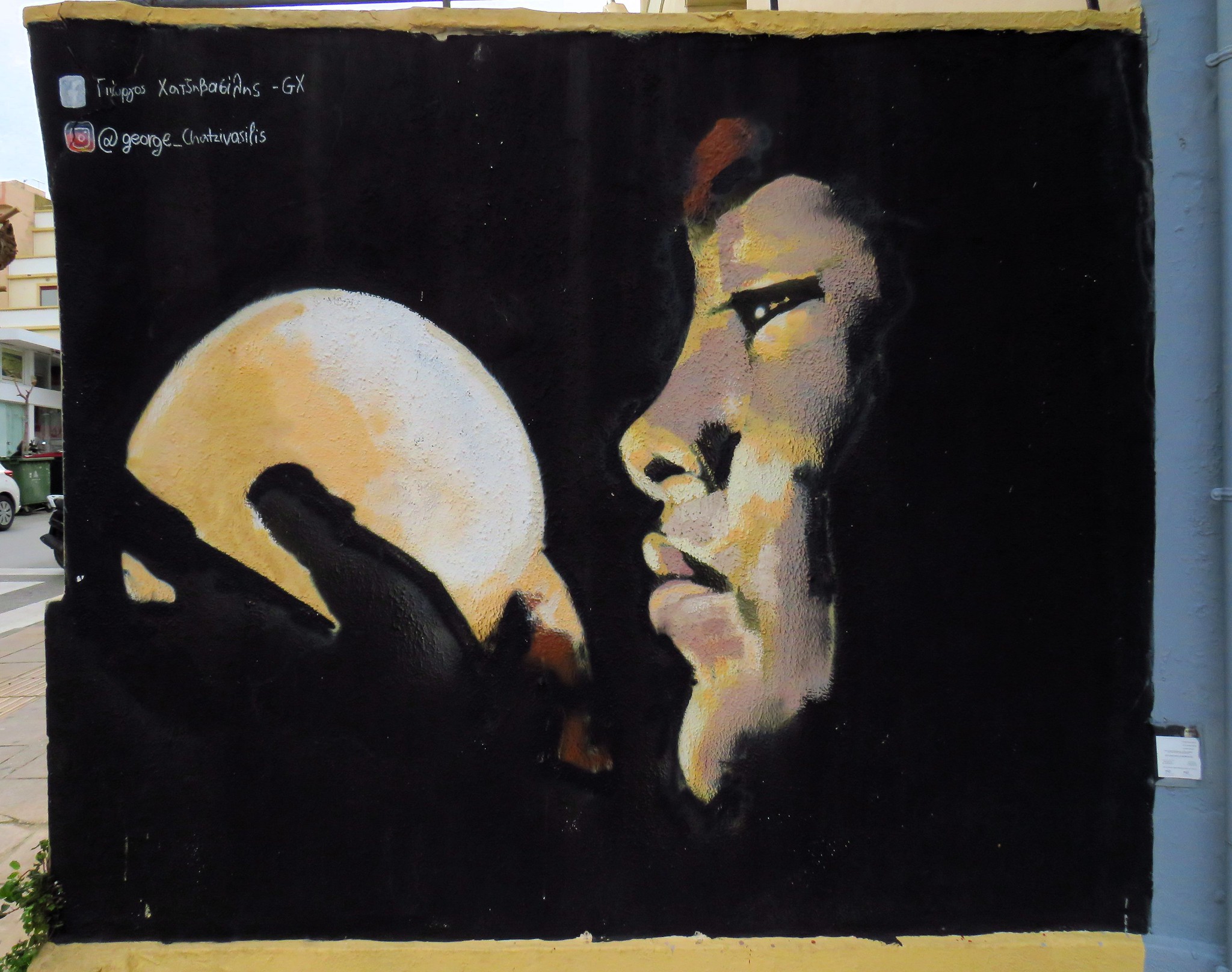 Vad är så speciellt med den, undrar du. Jo, det är porträtt färglagda av skolbarn (primary school) i byn Arkalochori. Barnen bor fortfarande i tillfälliga arbetarcontainrar! Jordbävningarna var 2021. Jag tror att politiskt aktive Theodorakis hade protesterat högljutt över hur invånarna behandlas i byn.