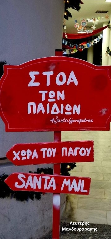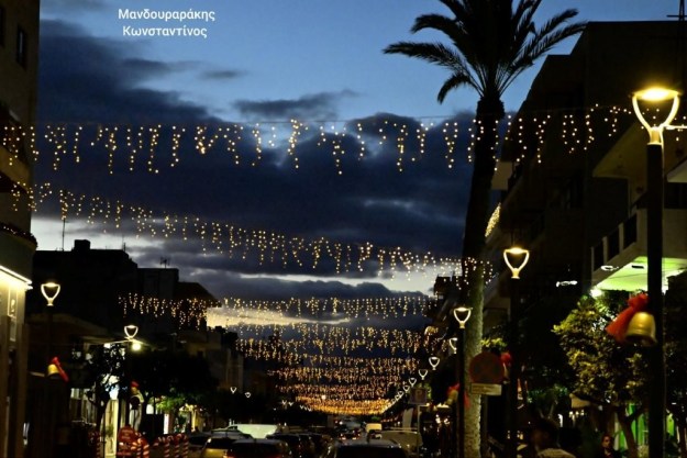Dekorationerna i Ierapetra är till största delen tillverkade och målade av volontärer som också dekorerat tillsammans med personal från kommunen. Granen på Frihetstorget tändes den 11 december och ”julbyn” kom upp i början av förra veckan med sina små röda bodar.