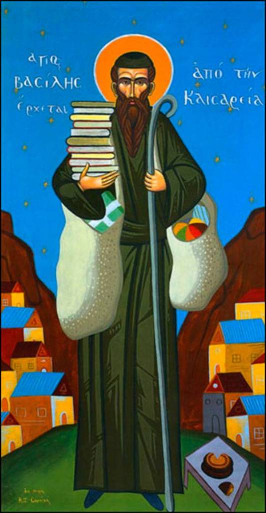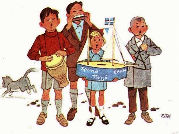Jag tar hjälp av Agios Vasilis, Jungfru Maria med Jesusbarnet samt barnen som går runt och sjunger julsånger när jag önskar alla en skön och fröjdefull jul!