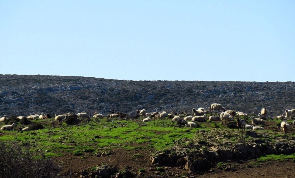 Området har gott om getter och får och på en kulle gick en samlad trupp och betade i solskenet.