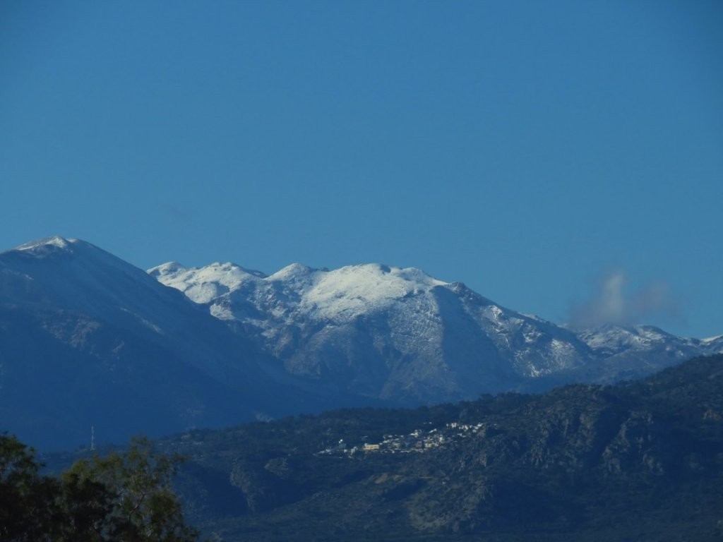 Panda väntade troget på parkeringen och efter nästan fem timmar var jag nöjd. Dags att styra kosan hemåt! När jag närmade mig Ierapetra fick jag syn på Dikti-massivet. Det hade varit så kallt under natten att nederbörden blivit snö på topparna!