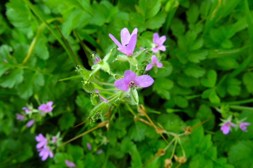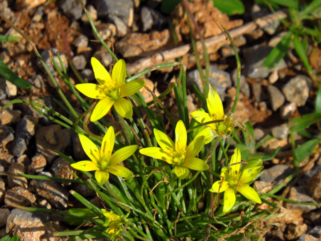 På den här vandringen växer inte så många blommor. Det är ju väldigt olika på den här vackra ön var växter finns. Jag undrar ibland om de som jagar speciella växter, t ex orkidéer, ser de små underverken. Om man saktar ner och tittar noga kan man få uppleva fantastiska, fina och finurliga konstruktioner på växter och blommor. De blir fler och fler under våren – håll utkik! De här är inte de allra minsta, men inte heller några som gör väsen av sig. En sorts vårlök (släkten Gagea) till vänster och Myskskära (en sorts Geranium) till höger: