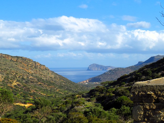 Jag är så sugen på heldagsvandring för nu är jag igång och har tröttnat på halvdags. Så planen för torsdagen var en heldags uppe i bergen – härligt! Tills jag på onsdagen tittat närmare på väderprognoser för södra och norra Kreta (här borta, alltså – inte över hela ön) samt sett en vädervarning för Iraklio. Hårda vindbyar. Från norr. Ville jag verkligen upp i bergen med de förutsättningarna? Vandringen skulle vara skyddad på delsträcka ett och två medan tre och fyra går i öppet landskap. Hm… Det fick bli en halvdagsvandring på lägre höjd och bergssluttningar.