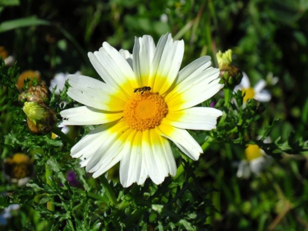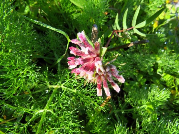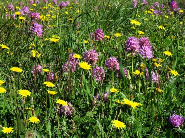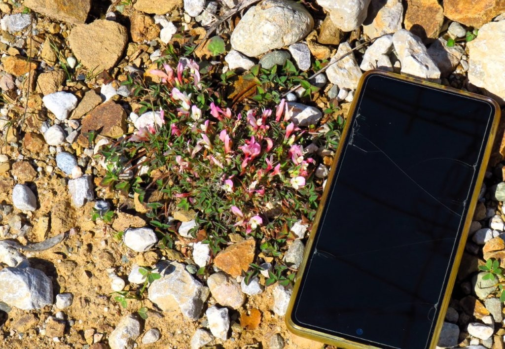 Jag har nämnt det förut, men det tål att nämnas igen: gå sakta och titta noga! Det finns så många små finurliga och vackra konstruktioner, ofta gömda i gräset. Alla växter och blommor är inte stora. Som de här små skönheterna bredvid min Samsung: