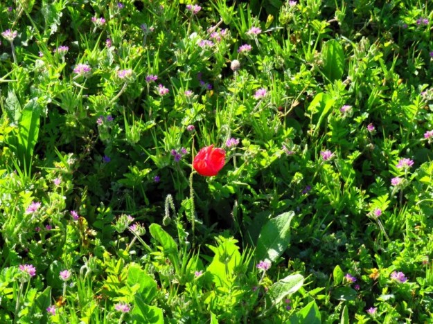 Ibland kan även blommor gå fel! Eller kanske den här Kornvallmon ville ha nya vänner?