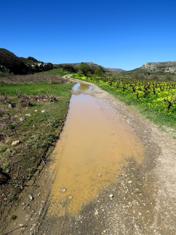 Blev så glad när jag möttes av små sjöar på vägen. Vi har fått ganska mycket regn, mer vatten behövs men det verkar som om den allra värsta krisen är över. Vi får se senare i höst hur läget är då. Kreta besöks ju av väldigt många turister vilka drar mycket vatten.
